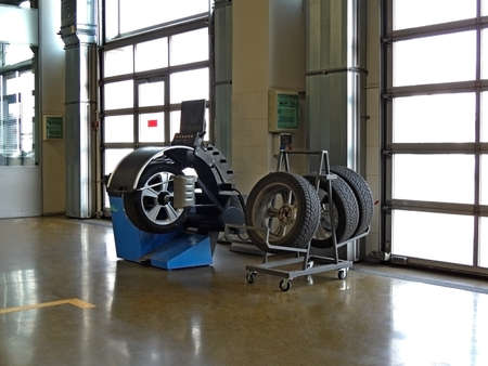 Mechanic changing wheel, replacement of winter and summer tires of modern car