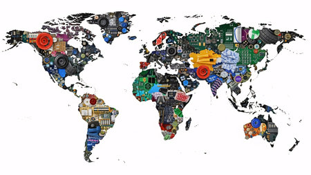 Vibrant global electronics market with diverse products and bustling activity in a world trade setting. Concept Electronics Market Trends, International Trade Dynamics, Diverse Product Offerings