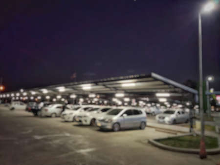 Car parking lot view from above, Aerial view at Ninja night market chonburi. Top view parking in thailand.