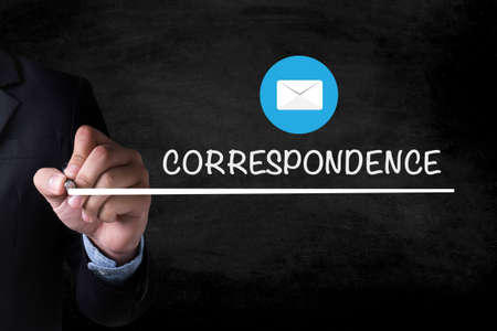 CORRESPONDENCE and Businessman drawing Page on blackboard