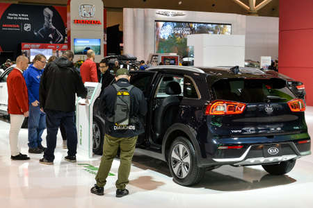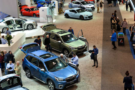Toronto, ON, Canada - February 15, 2019:Visitors view cars presented at the exhibition during the Canadian International Auto Show 2019 at Metro Toronto Convention Center in Toronto, Canada.