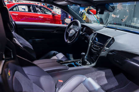 New York, USA - March 23, 2016: Cadillac ATS-V interior on display during the New York International Auto Show at the Jacob Javits Center.