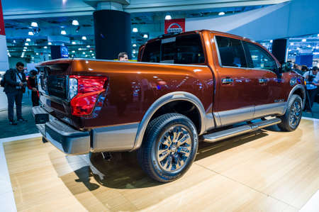 New York, USA - March 24, 2016: Nissan Titan XD on display during the New York International Auto Show at the Jacob Javits Center.