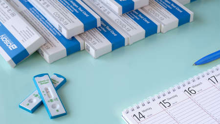 LONDON, UK - May 2021: NHS Test and Trace Covid-19 Home Test Kit