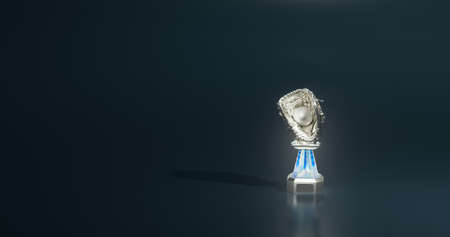 Shiny Baseball Silver Trophy with a Dark Petrol-blue background