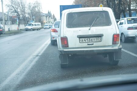 Moscow region< Russia - May, 1, 2019: car on a country road in Moscow region, Russia