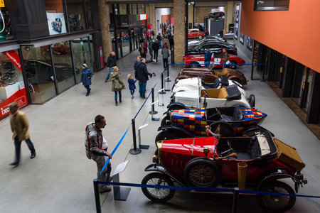STUTTGART, GERMANY - DECEMBER 30, 2018: Interior of museum Mercedes Benz Welt. The museum covers the history of the Mercedes-Benz and the brands associated.
