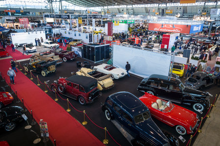 STUTTGART, GERMANY - MARCH 17, 2016: One of the exhibition halls. View from above. Europe's greatest classic car exhibition RETRO CLASSICS