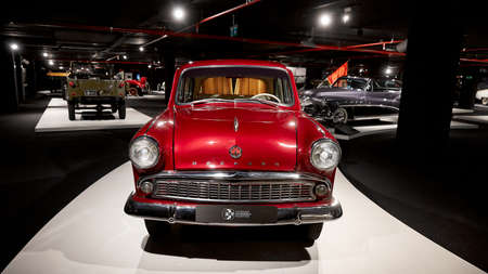Athens, Greece - Dec 22, 2019: Interior view of the Hellenic Motor Museum in Athens city. Collection of old time classic cars from around the world