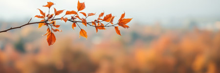 Bright orange autumn leaves gently swaying on a branch against a blurred background of fall foliage in soft sunlight