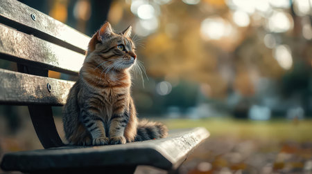 Realistic Photography of a Park Bench with a Cat Resting