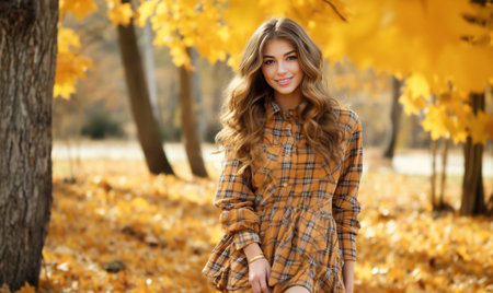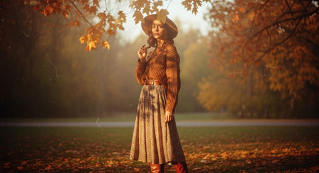 Generative AI : Outdoor autumn portrait of beautiful girl