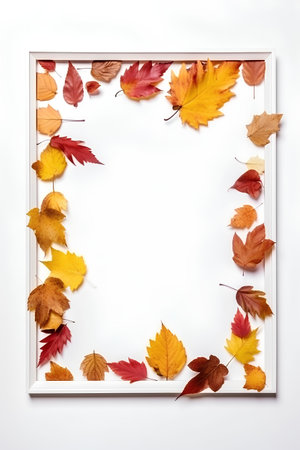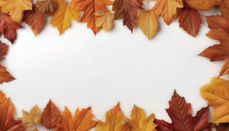 Bright and colorful autumn frame of fallen leaves with white copy space for advertisement.