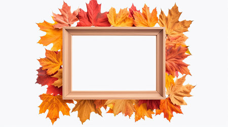 Generative AI Image of Empty Photo Frame with Maple Leaves in Forest in Autumn