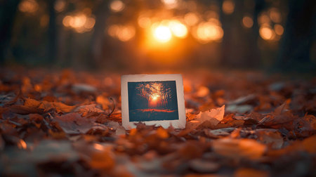 Generative AI Image of Photo Paper with Leaves in the Forest during Autumn in the Morning