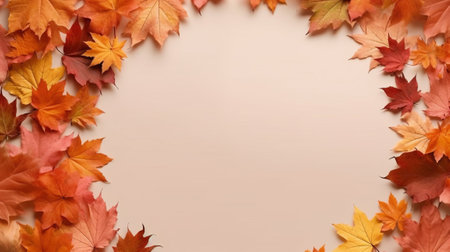 Cream-colored frame surrounded by colorful autumn leaves. Perfect for fall designs.