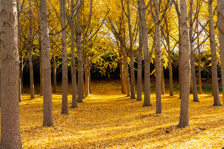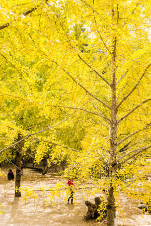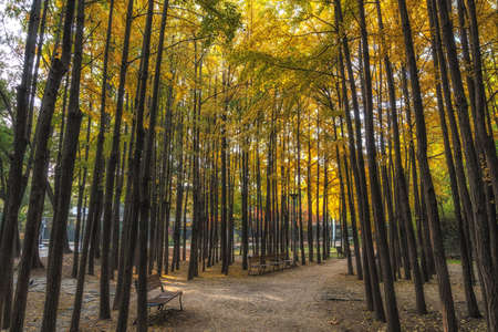Ginkgo tree forest in Seoul Forest taken during autumn season
