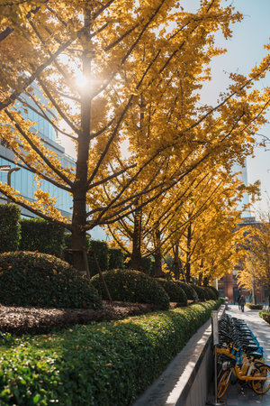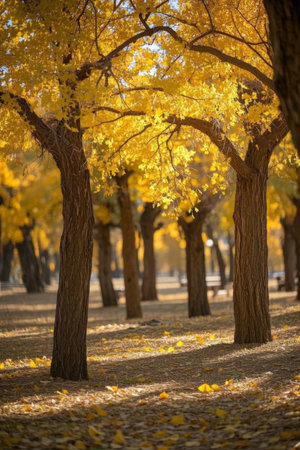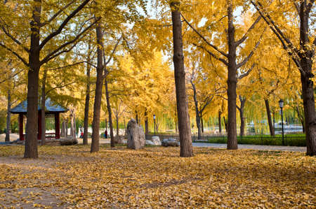 Ginkgo trees in the park at autumn in Beijing, China