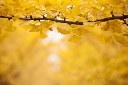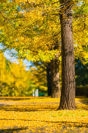 Ginkgo trees in autumn, Tokyo, Japan. Selective focus.