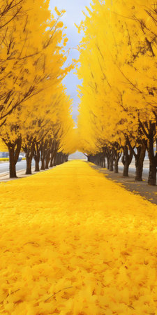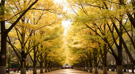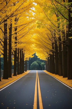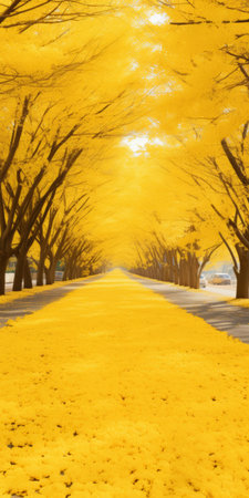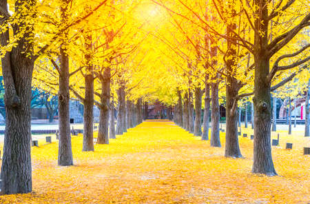 Beautiful alley in the south korean park with yellow leaves.