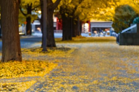 Blurred Background of a street with FAllen Ginkgo Leaves in AUtumn