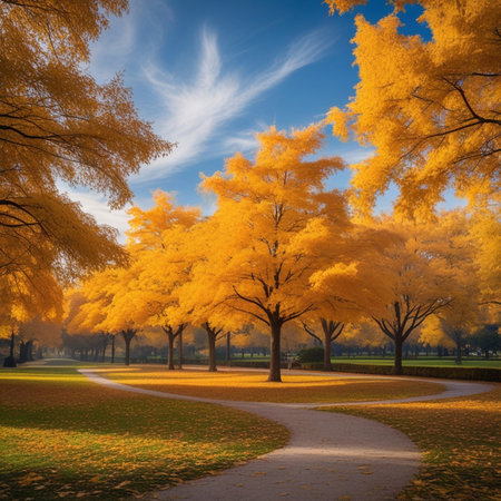 Dec 4 2024 Vibrant autumn scene featuring a path covered by golden leave