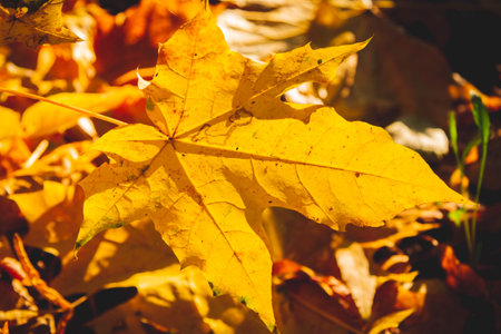 Colorful backround image of fallen autumn maple leaf perfect for seasonal use pattern