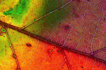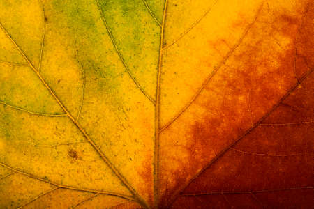 Colorful autumn leaf macro close up. Abstract background and texture for design.