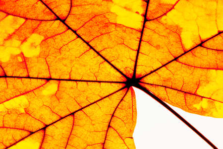 texture with veins of red and yellow maple autumn leaf