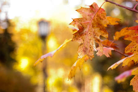 Beautiful bright colorful autumn leaf in the park