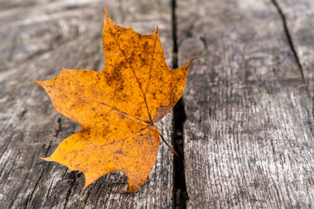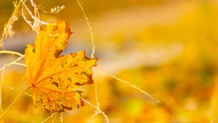 The ghost of autumn still lives in the maple leaf. Even if its summer, spring or winter. Withered maple yellow leaf