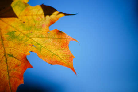 Close up of colorful autumnal maple leaf