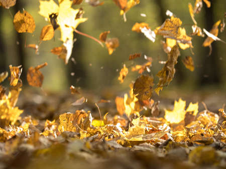 flying dried leaves, abstract background