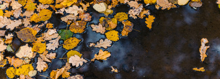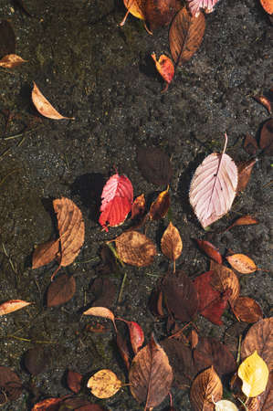Colorful autumn leaves in a puddle. Colorful autumn background