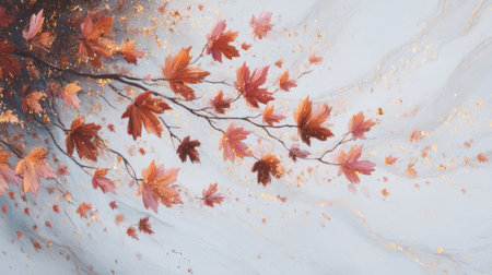 Golden autumn leaves create a cinematic texture on a tranquil ground