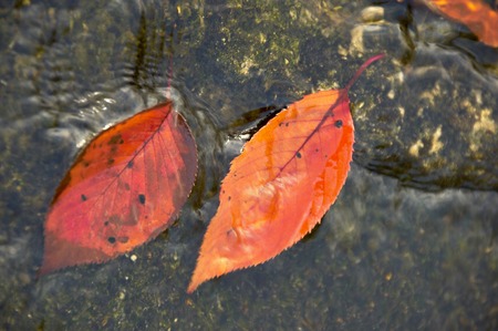 Colorful autumn leaves floating on water surface. Colorful foliage floating on water surface.