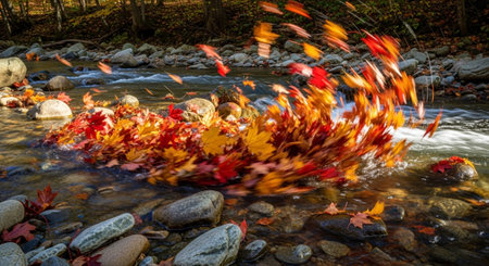 Tranquil Reflections on Water Featuring Beautiful Fall Leaves, Rocks, and Scenic Natural Beauty