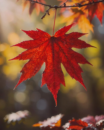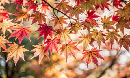 Captivating Autumn Serenity with Vibrant Japanese Maple Foliage and Bokeh-Filled Backgrounds