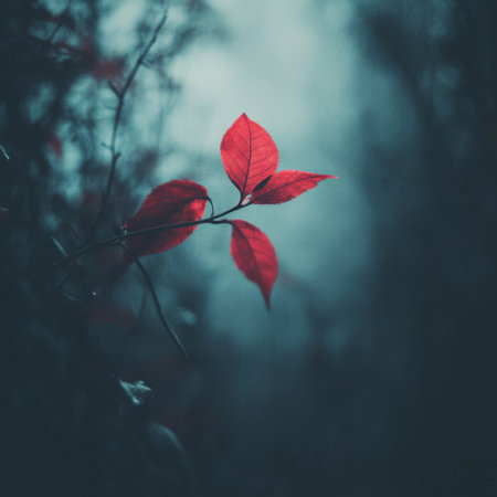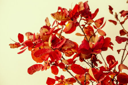 Beautiful red leaves bushes background, backdrop with selective focus.