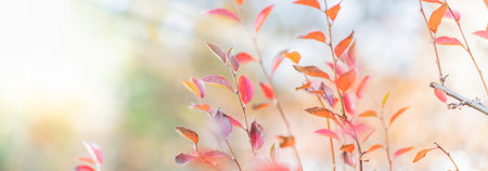 Beautiful panoramic autumn scenery with colorful leaves and bokeh background