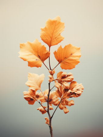 This captivating image features vibrant autumn leaves in stunning orange and yellow tones, set against a soft-focus background. Ideal for nature and seasonal themes.