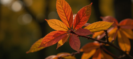 Close-up shot of vibrant autumnal maple leaves. Rich colors and intricate details.