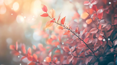 Generative AI : Autumn red tree branch with leaves natural fall vivid sunny background
