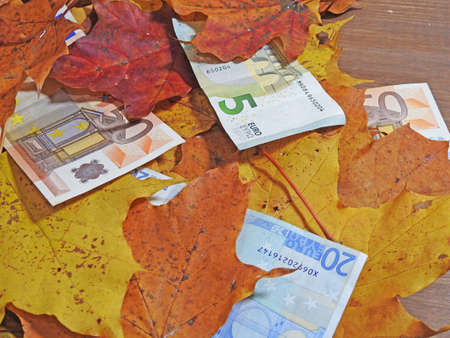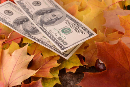 Autumn abstraction with money and maple leaves