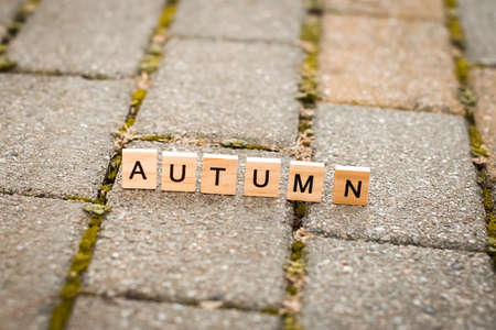 Word AUTUMN is composed of wooden letters. Closeup