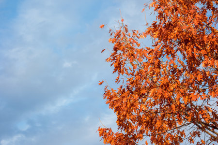 Autumn tree with nice and colorful orange leaves. Autumn maple leaves. Nature background in fall season.