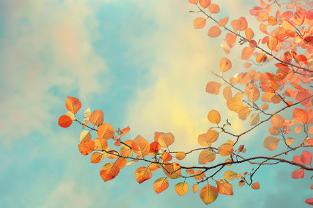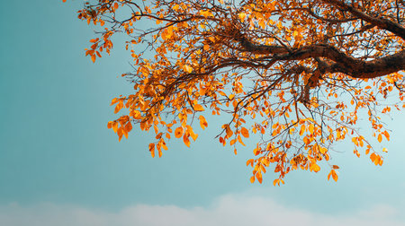 Stunning orange autumn leaves beautifully contrasted against a soft sky blue background, evoking a serene and artistic mood.