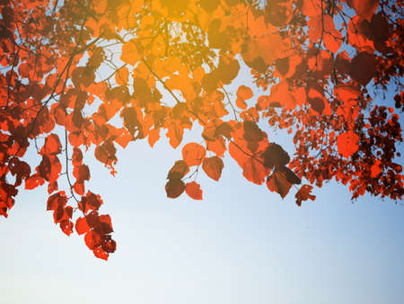 Beautiful autumn leaves and sky background in fall season, Colorful maple foliage tree in the autumn park, Autumn trees Leaves in vintage color tone.