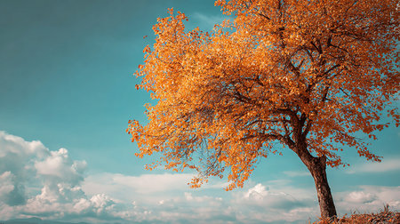 Autumnal tree with yellow leaves against blue sky. Color toning applied.