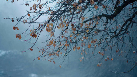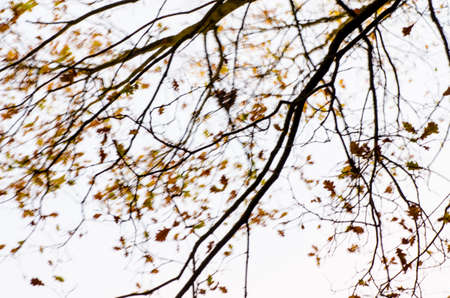 dried asymmetric sides of branches of a tree in winter with falling leaves